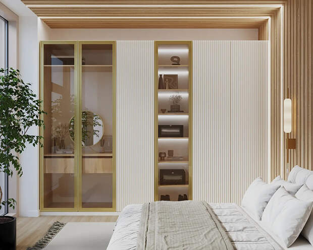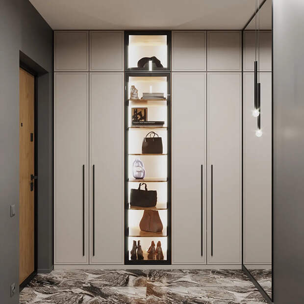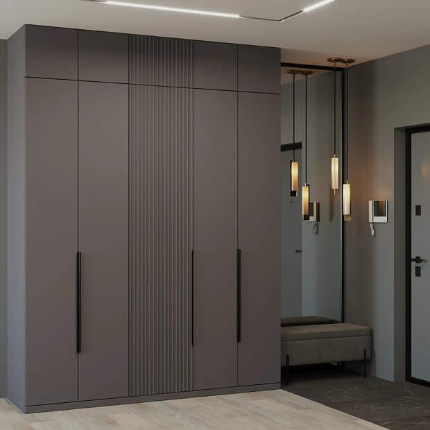 Также стоит учитывать высоту потолков и форму помещения. В высоких квартирах удобно использовать вертикальные модели под потолок — они компенсируют нехватку ширины. В спальне или детской комнате шкаф можно вписать в угол, подобрав модель с Г-образным решением или двумя торцевыми секциями.